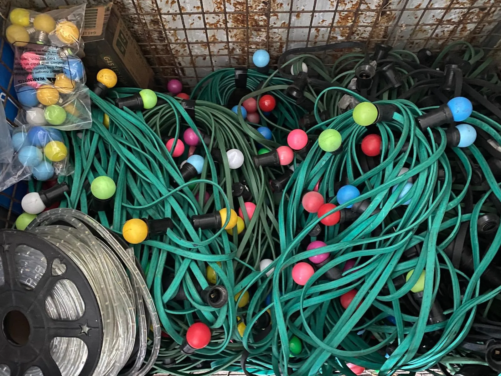 Guirlande van 10m met gekleurde lampen. Deze kabel is zwart en doorverbindbaar.