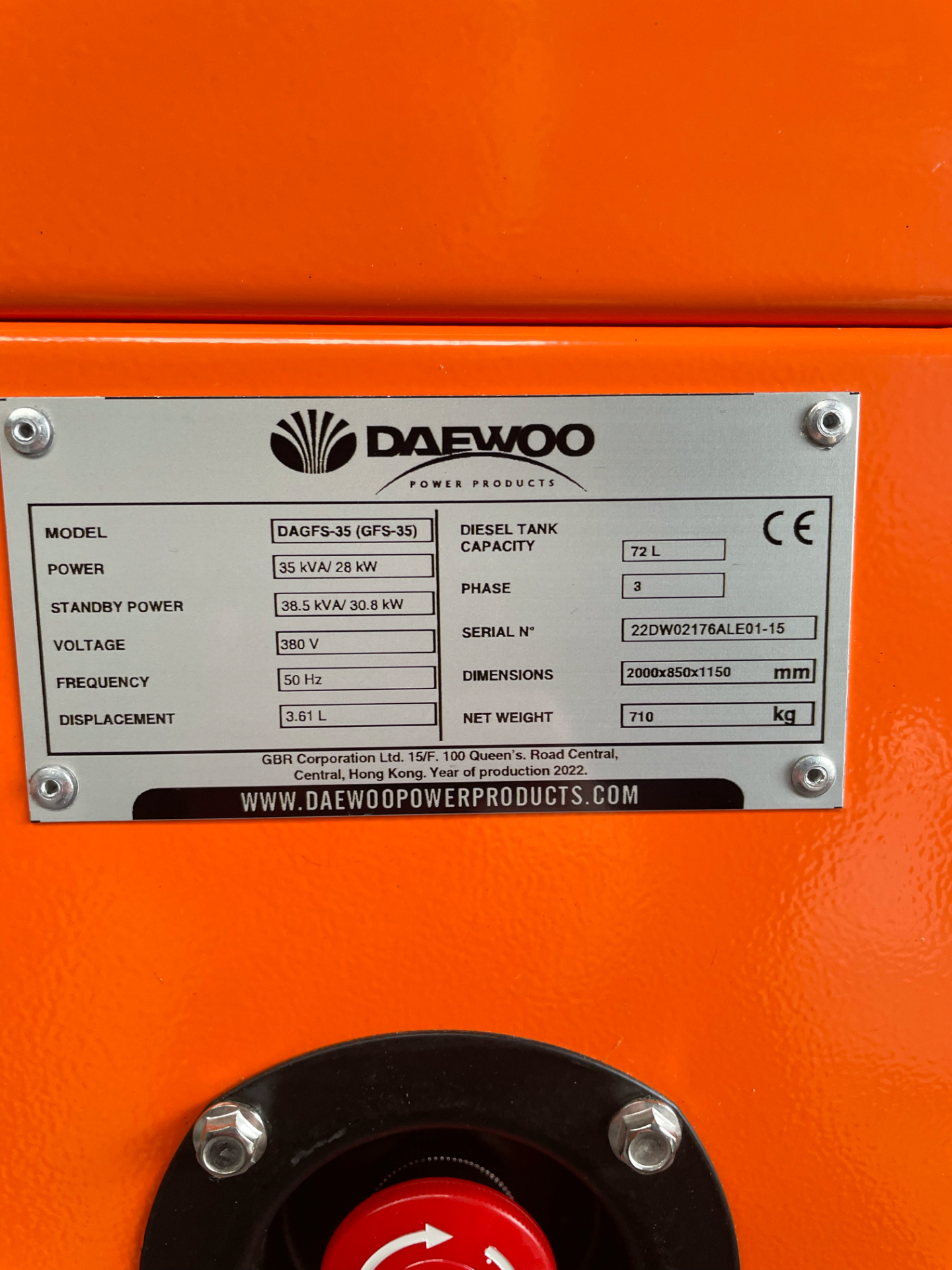 Power: 35 kVA 28 kWStandby power: 38.5 kVA 30.8 kWVoltage: 380 VFrequency: 50 HzDisplacement: 3.61 LDiesel tank capacity: 72 LPhase: 3Dimensions:2000 x 850 x 1150 mmNet weight:710 kg