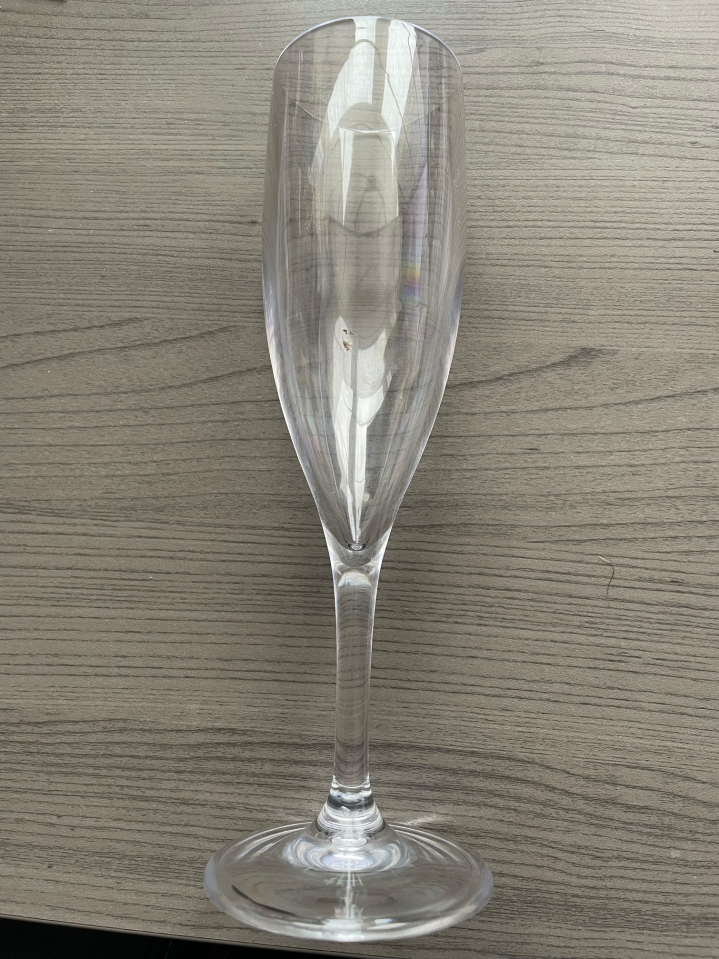 Herbruikbare harde plastic Champagne bekers te huur, Niet te onderscheiden van echte glazen. Per bak van 30 stuks. Bij beschadiging of verlies, kost dit 3,5€.
